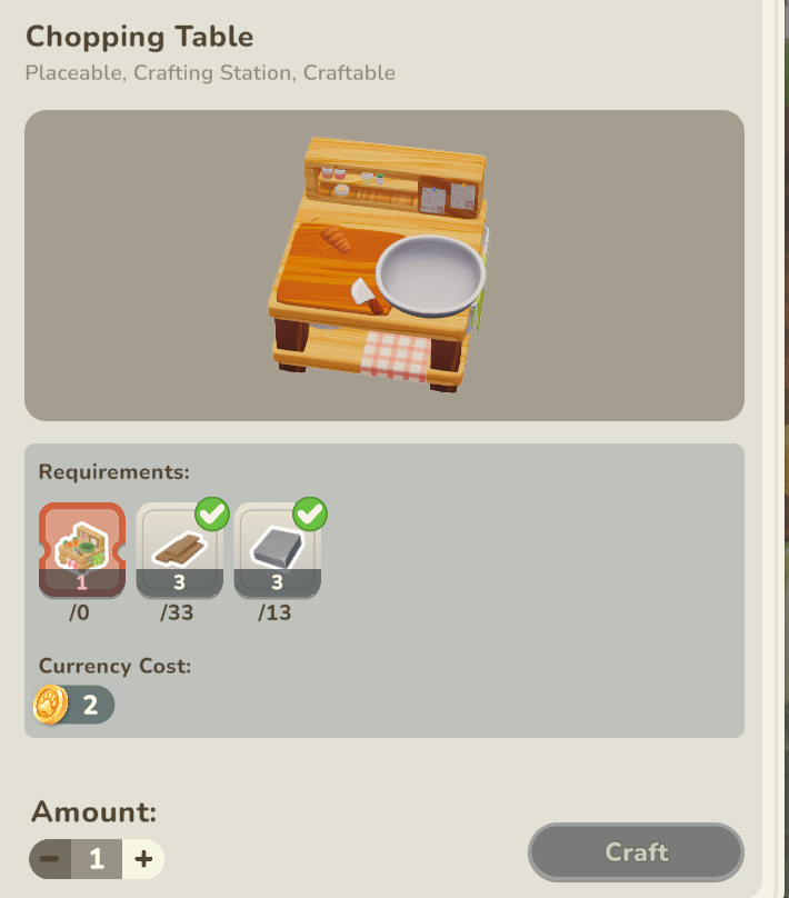 Two crafting tables are available with tickets, which have appeared in the inventory of players who have completed the tutorial quests.